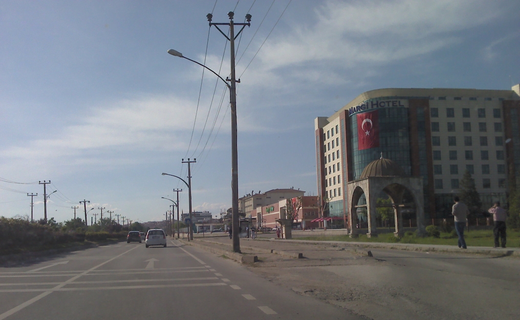 Bu yol üzerinde sağ kolda sırasıyla Üniversite Kampüsü, sonra pehlivan heykellerinin bulundugu dönerli kavşak (dümdüz ilerleyiniz), Migros'un bulunduğu ışıklı kavşak ve daha sonra da Margi Hotel ve alışveriş merkezi vardır (Alttaki resim).